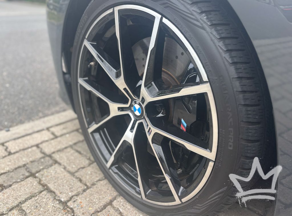 An alloy wheel detail goes far beyond a standard clean. All wheels are safely removed, treated with iron fallout remover inside and out, thoroughly cleaned and then polished. Tyres are dressed with a non‑silicone dressing, and a ceramic coating is applied to protect the metal and make future cleaning easier. Once complete, the wheels are refitted and torqued to factory settings. While the wheels are off, I also take the opportunity to deep‑clean the wheel arches and brake components. Prices from £100 per set.